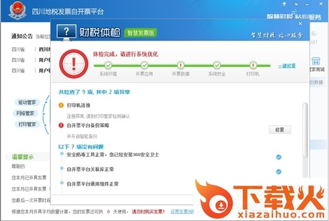 3.财税体检:通过“系统检测”可进行财税体检,同时还通过“驱动管家”、“网络管家”、“打印管家”进行单项应用体检。