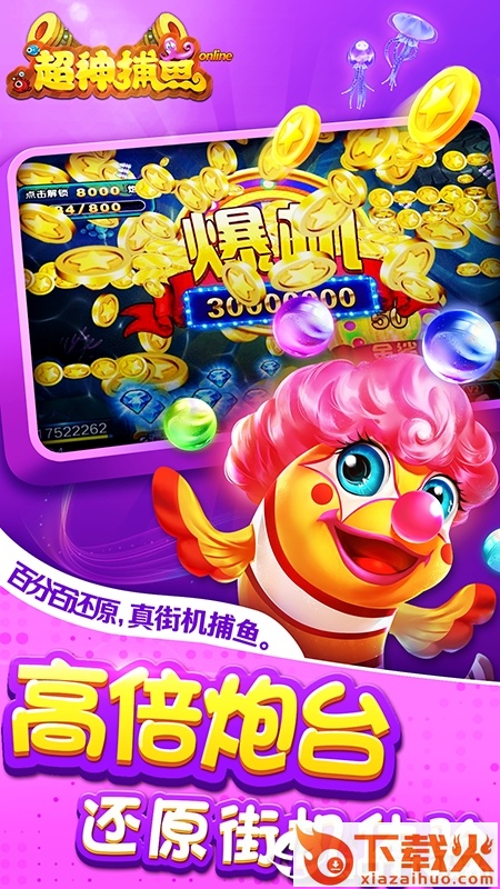 游戏厅经典街机捕鱼风格,100%还原绚丽画面、万倍炮台,爆机变土豪。