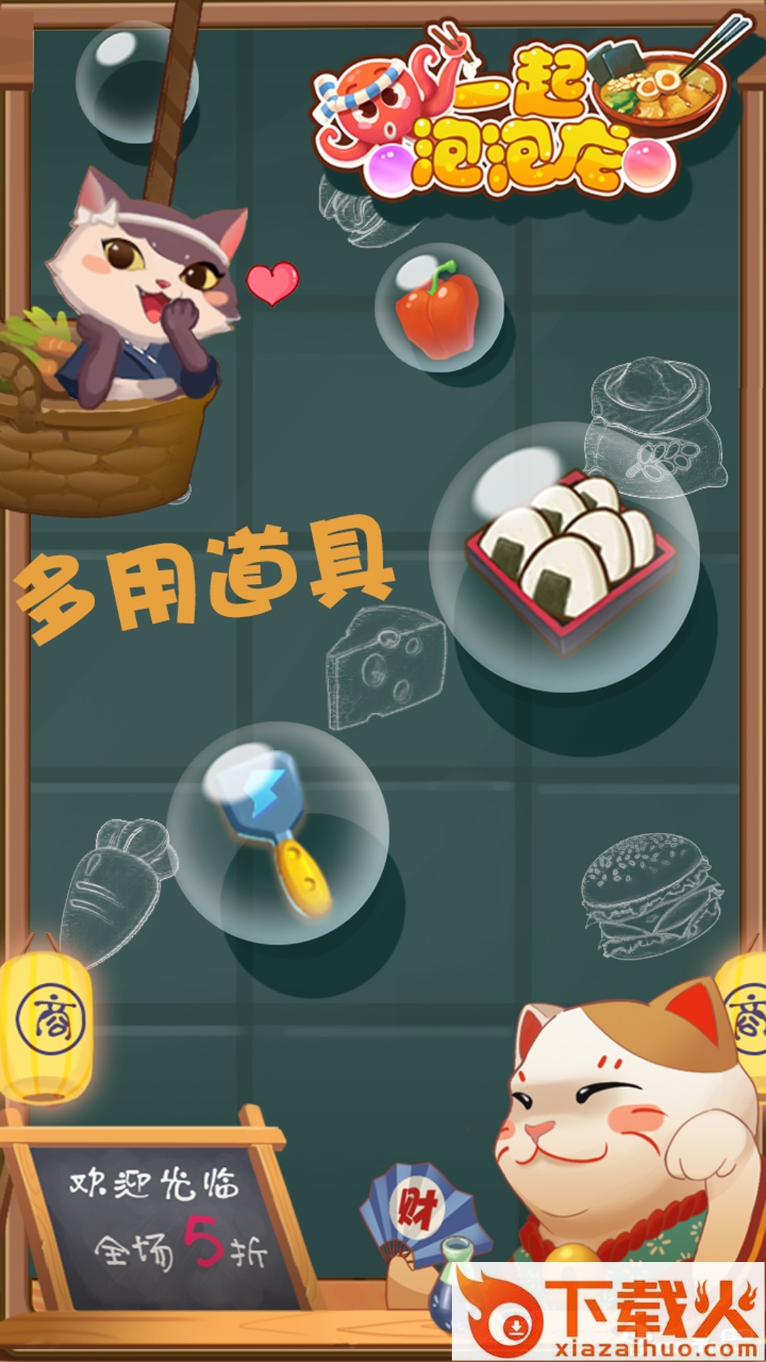 一起泡泡龙游戏,恭喜发财的新年泡泡龙游戏来了。简单的操作,关卡超多,快来玩玩看吧。给你带去更多美食,和小猫一起闯关吧。...