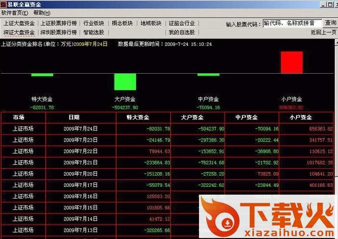 易联全赢资金软件主要是查看分类四项资金流向,分别是:超大户资金、大户资金、中户资金、小户资金流向。个股分类资金流向,该资金流向是计算每个分类持仓的净买入与净卖出资金。除去当天买卖对倒的资金合计净流入或是流出。