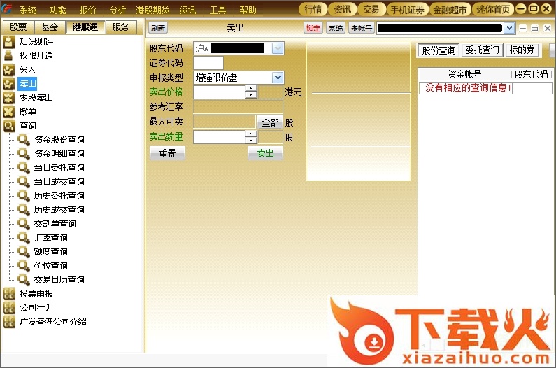 七、港股通开通后即可进行相关业务操作,界面如下: