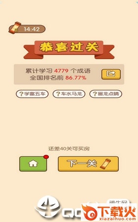 1.不断的闯关收获新的成语知识,丰富的积累邀请你挑战更多的关卡内容;