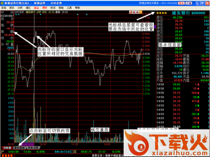 成交明细表。在这里您可以看到当天按时间次序排列的每一笔成交的26