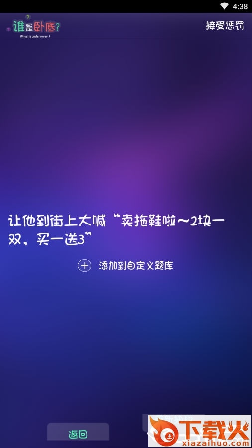 聚会玩是一款适合聚会的应用,只需要传递手机给下一位玩家便可,本应用支援4-20人同乐,也能自行增加好友间才知道的题目唷。卧底上限跟白板上限依应用人数智慧调整。