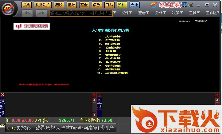 华宝证券大智慧网上交易是基于Windows平台运行的新一代网上行情交易软件,支持A、B股,支持股指期货行情, 支持三板,创业板。用户下载后可根据向导完成安装。主机地址,用户名和密码均不需更改。