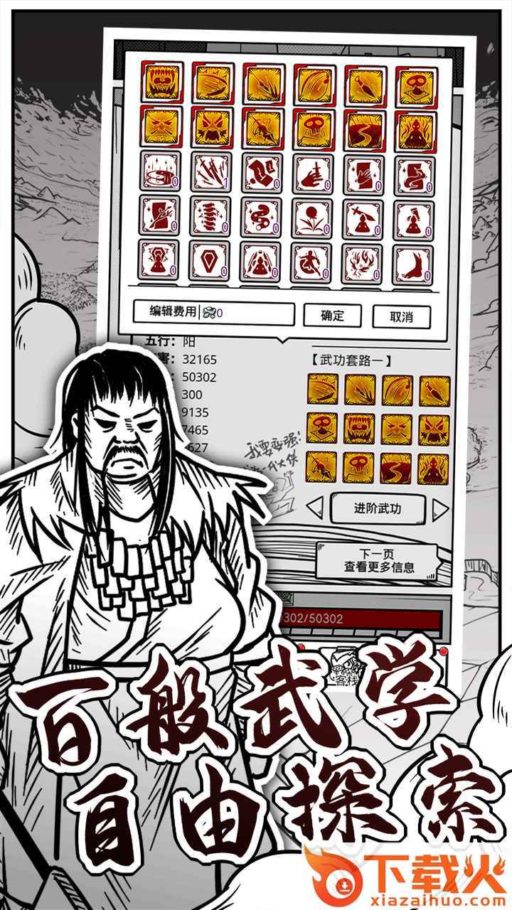 初始武功直接升级即可,随机会获得一些秘笈,可以习得其他武功,但格子有限,且武功效果存在一定搭配空间,有选择策略。