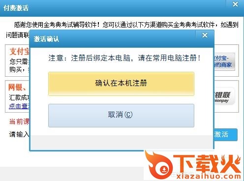 第二步:输入激活码,激活码为20位数字(上图里的激活码仅示范,激活码客服发你的为准),一个激活码固定一个科目;