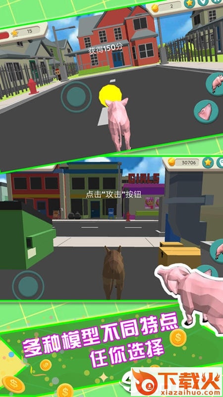 飞天火箭猪是一款超魔性的3D模拟手游,游戏中玩家操控不同的小猪在城市里进行任意的游玩,不管是跑还是飞,甚至还能够装备武器进行毁灭!快来下载吧!...