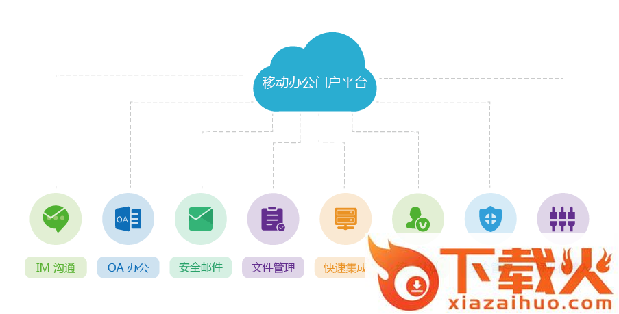 以企业通知、邮件、云盘、音视频会议为基础能力,并为第三方应用提供开放能力,打造企业应用及业务的统一入口