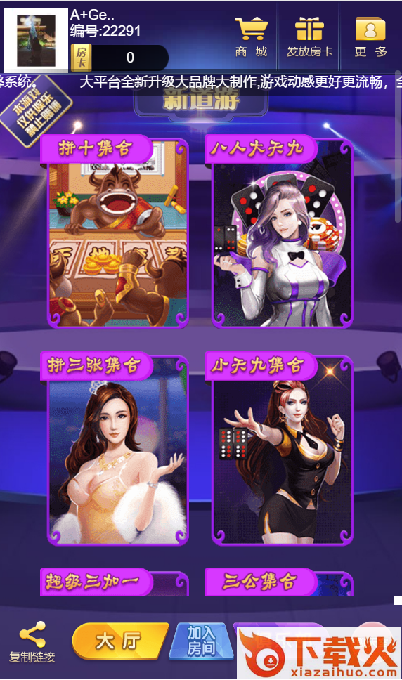 新道�[棋牌官�W版,一款�【鄱喾N牌�玩法,有真人�上��鸬�淇诉[�蚱教ǎ�每天都有人陪你�硪�龈�技,�o�是喜�g地主�是牛牛,都能找到�凫蹲约旱哪J剑�而且�有免�M金豆��Q,��[�蜻^程�得更加�p松。另外,新道�[棋牌安卓版中�有清新地道的界面�L格,如此精彩的地方�鼍埃�配合地�私êB背景,�o玩家�原仿佛回到家�l的�w�,感受家�l原汁原味模式的同�r�w�沉浸式�鼍啊�