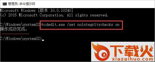 然后把bcdedit.exe /set nointegritychecks on复制到命令窗口,按回车执行即可。