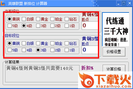 英雄联盟新排位计算器是一款lol的游戏辅助工具,找人代练不怕被坑。适用于代练通的英雄联盟代练价格计算器,可快速计算出每个段位的代练价格,让玩家对代练市场价格有个初步的了解,以免被坑。