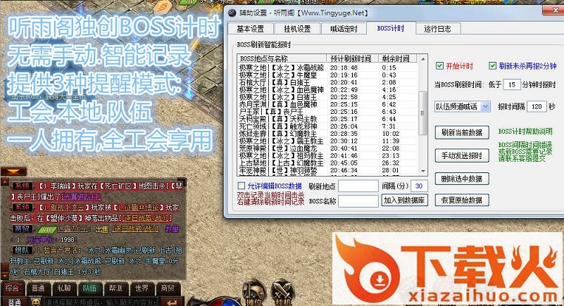 3.BOSS智能计时: 支持神舰及魔龙地图;全自动任务升级,自动喊话;