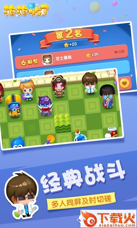 泡泡炸了手游是一款好玩的休闲对战游戏,这款游戏拥有非常简洁精美的画风,大家可以在游戏中选择喜欢的人物来控制人物制造泡泡,用你的泡泡取得胜利,你同样也要躲避敌人的泡泡哦,欢迎各位下载试玩。