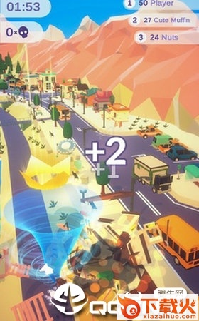 1.在这款游戏中玩家将和其他的玩家共同战斗,玩家需要通过摧毁房屋来扩大自己的龙卷风。