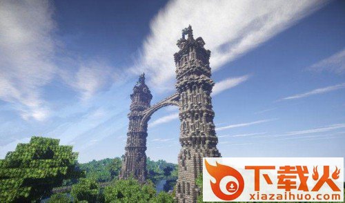 我的世界地图存档中世纪双子塔楼是由两个中世纪塔楼所组成的建筑,中间通过一座石桥相连接,显得非常壮观高耸入云。