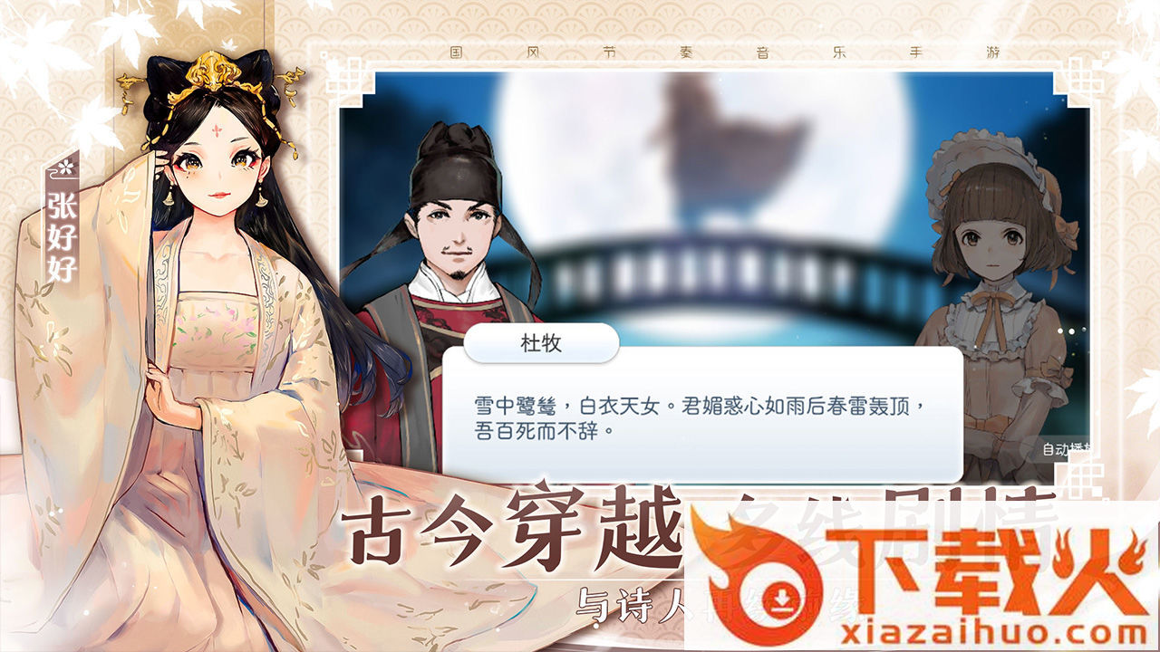 多线剧情,古今交织,用生动的形式重现历史典故。在体验剧情的同时,才会解锁相关主题的歌曲。你也许会遇到意气风发的诗仙李白,亦或者是心怀苍生的诗圣杜甫,并与他们一起展开一系列的故事……