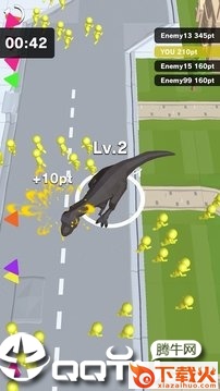 恐龙横冲直撞游戏是最新推出的一款io游戏,和以往的神作拥挤城市,黑洞大作战玩法类似,但主体变成了恐龙。游戏中玩家操控恐龙大肆破坏,不断的吞噬各种小人,来壮大自身,游戏还能容纳多玩家同台竞技,看看谁的恐龙更厉害呢。