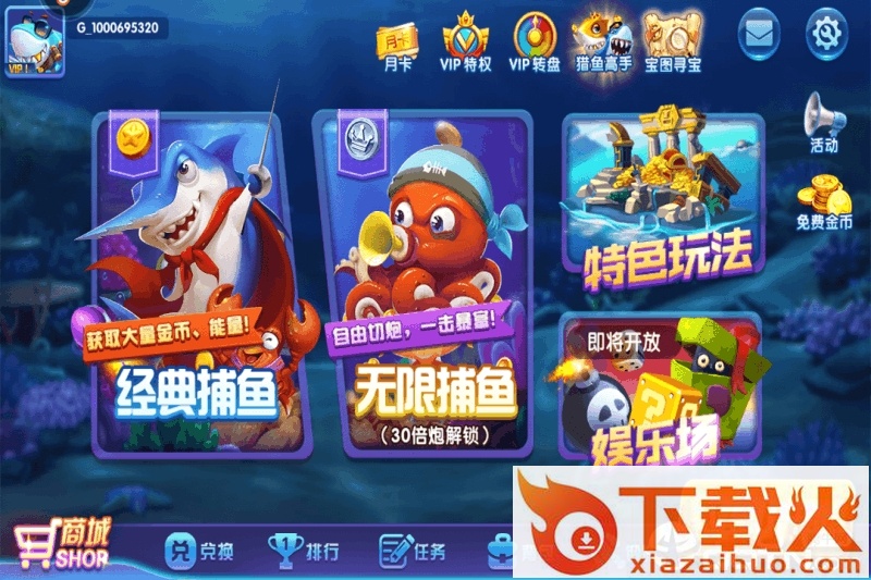 玩家下载安装最新版本【来玩捕鱼】游戏之后,可以进入游戏开启捕鱼之旅!