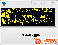lol创建名字一键安装和卸载工具使用之前需要玩家关闭游戏,安装完插件之后重启游戏就可以在别的区创建16个汉字的游戏id了!