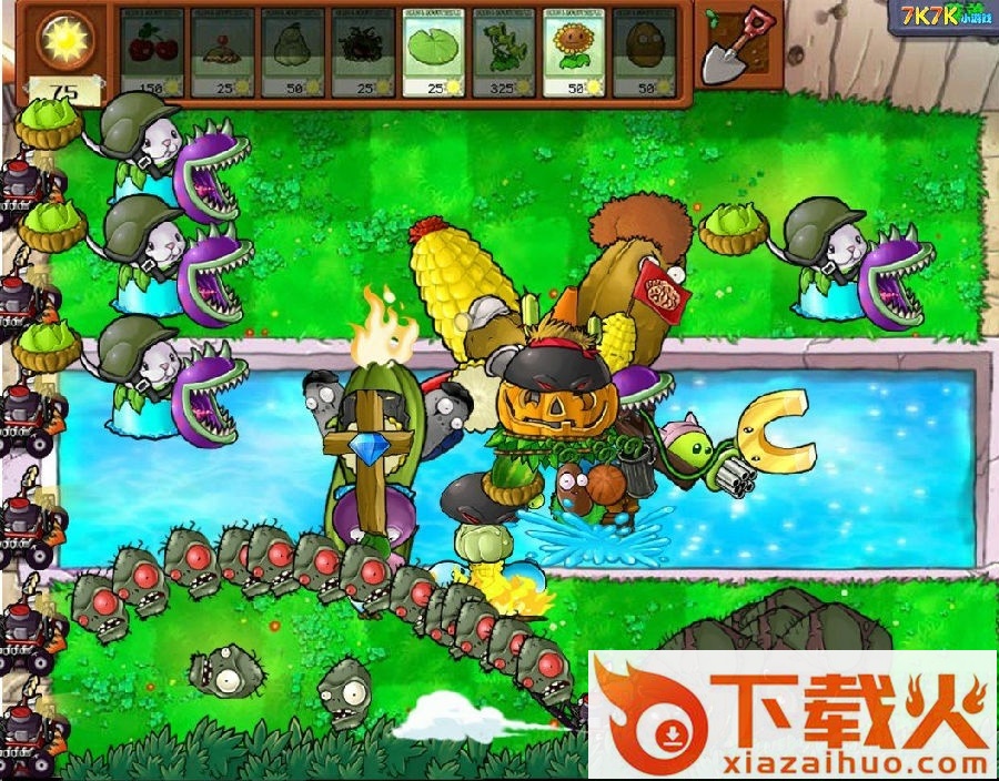 足球僵尸:会用足球攻击最前排的一棵植物,好在它的射程比较进在靠近前杀掉即可。