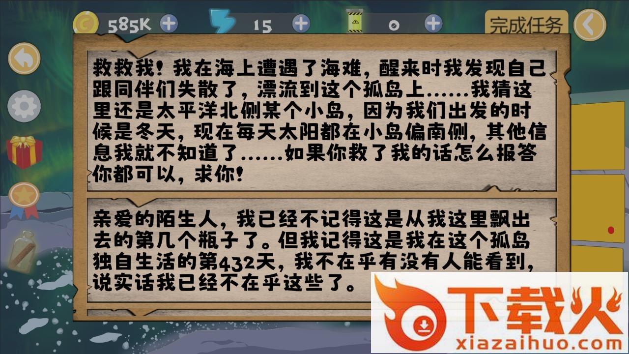 幸好这个小岛的海上会漂过一些神秘瓶子,收集这些瓶子可以获得资源和情报;