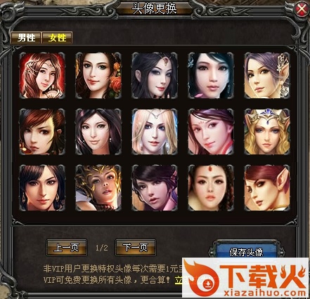 2、 每个职业有男性和女性两个性别,点击角色图形或下方的性别图标进行选择;