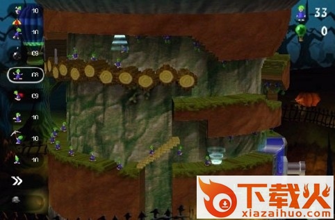 旋转的3D游戏关使小旅鼠行走如飞。进行游戏时,玩家需要不停地旋转圆柱体的地图,以便观察小旅鼠的一举一动。旋转十分简单,只要右击鼠标然后拖动。此款游戏还具有出色的暂停功能。随着难度的逐渐增加,玩家可以在游戏进行中暂停,旋转并察看每只小旅鼠的位置。这一功能使玩家有时间制定策略。当游戏暂停时,玩家可以选择屏幕上任何一只小旅鼠,让它准备好做一下步工作。当玩家给某只小旅鼠指派任务后,小旅鼠将立即遵照执行,游戏暂停终止。如果希望专注于某一步行动,玩家也可敲击空格键放大或缩小地图。
