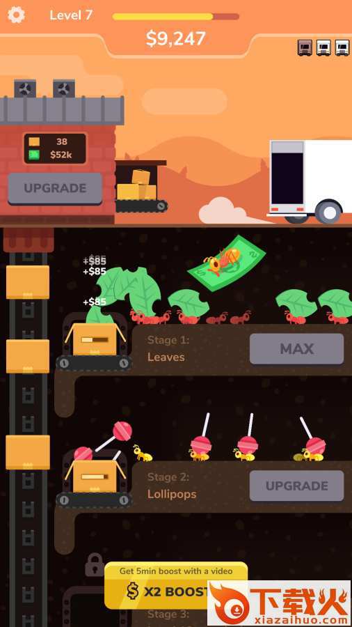 刚开始看到游戏名称小编还觉得它肯定很简单,控制一些小蚂蚁有什么难的,但是在试玩几个关卡之后,才发现它的难处所在,难的是我们要想方设法让这个加工厂变强变大变富有,只有这样,我们才能招募到更多的蚂蚁工人。