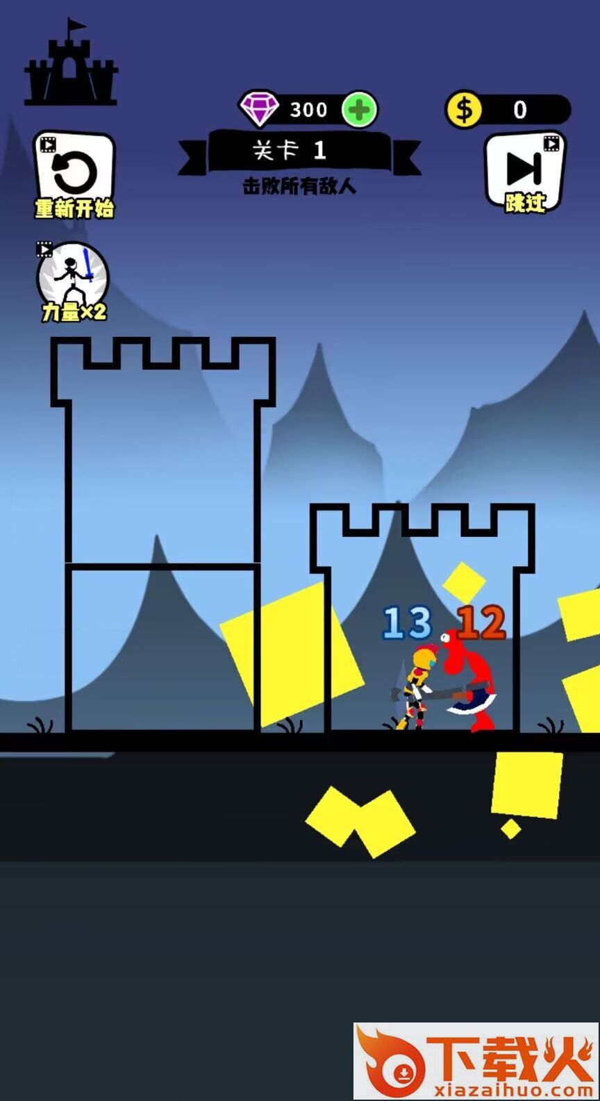 小人对决也是抖音上热门的小游戏,使用更加简洁的线条画风来完成爬塔通关的任务,在小人对决游戏中你需要选择正确的路径来上升。