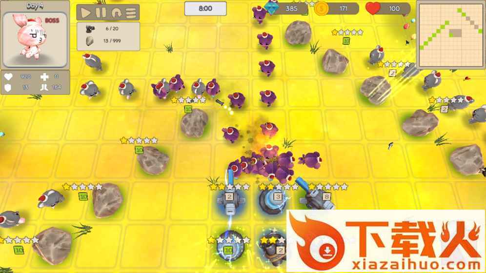 顽皮的小熊和他的小伙伴想要破环你的家园,它们不断的向你家冲锋,但是别担心,使用丰富的炮塔击退它们。