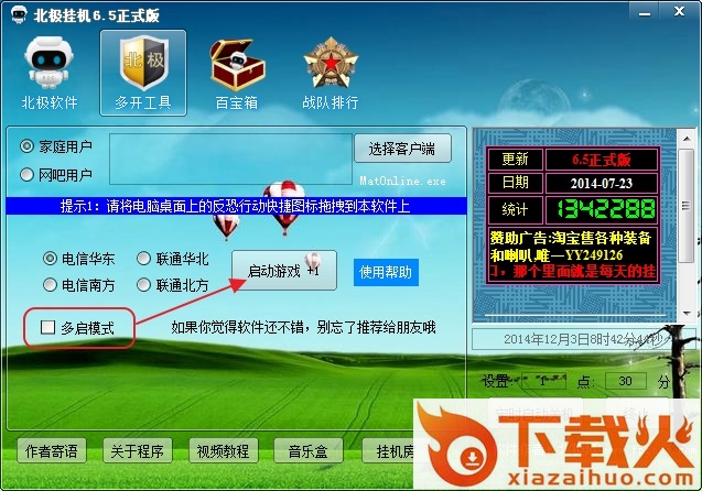 反恐行动北极挂机是一款绿色免费的由北极风软件官方推出的反恐行动挂机辅助工具。软件功能强大,支持电信、联通等各大网络,使用北极挂机不仅能够进行游戏挂机,还支持挤房间、定时关机功能,简单好用备份mat玩家青睐。