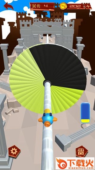 3、根据关卡的难度不同黑色的区域也会不同,并且转盘的速度也会在后边的关卡中愈发的快。
