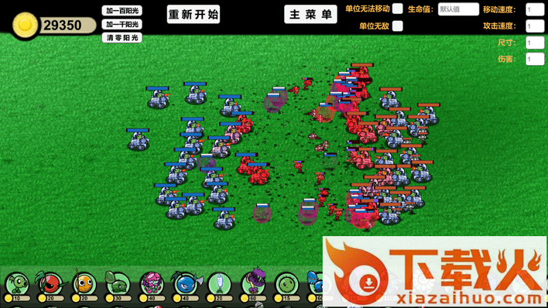 玩家自制的植物大战僵尸,玩家可以在游戏中体验各种经典的挑战,一些流行的游戏玩法模式,这款游戏都有,而且线上还有很多全新的挑战,玩家能够在游戏中体验不一样的游戏乐趣,玩家需要在游戏中添加大量植物,通过自己的智慧通过关卡,合理使用他们的技能,就能够轻松通关。