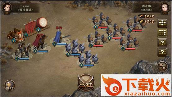 玩家之间PVP的主要玩法;主公等级在达到6级后,开启远征功能;可以匹配到与自己等级相近的其他玩家,并可以通过成功击败对方,来获取他人粮草和木材。