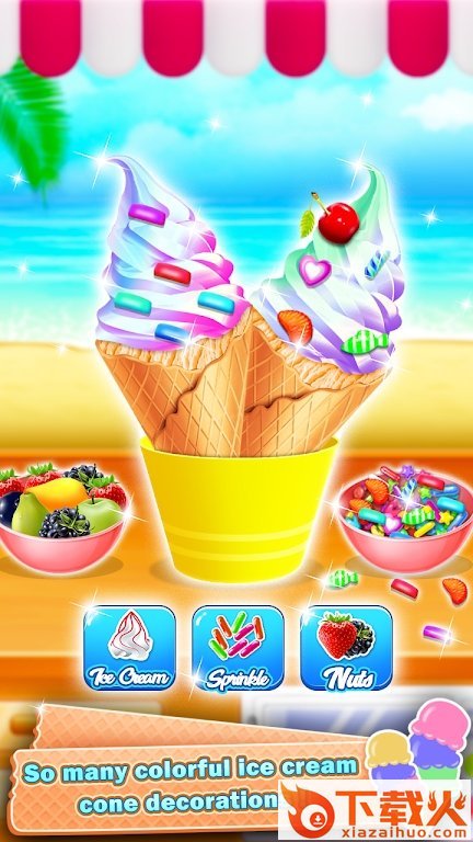 1、制作不同形状和口味的冰淇淋,不用考虑冰淇淋的风格或玩法。