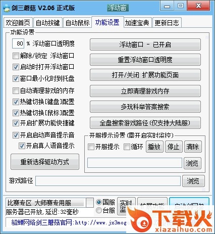 启动时打开浮动窗口:勾选后随剑三蘑菇主窗口一起启动浮动窗口。