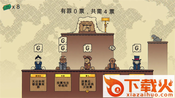 3、只有投有罪的票打过无罪的票才能审判被告,这样才能完成游戏目标,审判犯罪分子;
