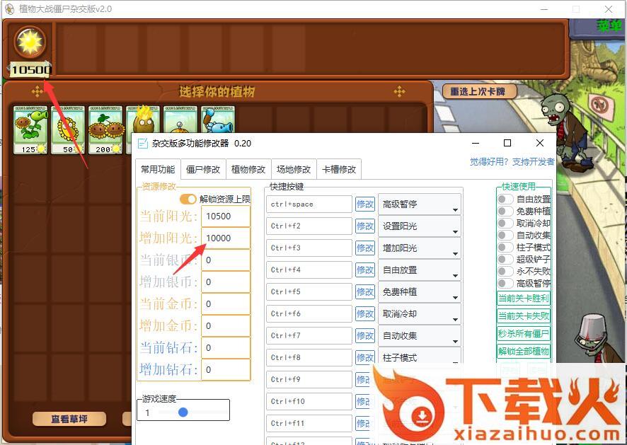 纠错留言#植物大战僵尸杂交版多功能修改器 v0.20 简介