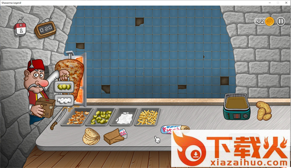 沙威玛传奇电脑版让我们体验到经营餐厅的乐趣,我们将经营一个制作沙威玛的小吃摊,拥有不同的制作工序,需要按照制作步骤才能完成制作,沙威玛会有多种配料,从左边的老头那里可以获得黄瓜和调料,右边则可以获得薯...
