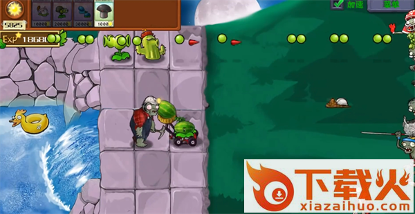 3、该闯关战斗的模式下将会看到植物允许放置的地方越来越小,所以策略上需要及时的改变;