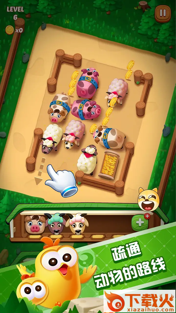滑稽农场是个非常有趣的农场益智游戏,结合了华容道的玩法方式,你需要将所有的动物移出来才能过关,让动物能够疏通道路,不被困住,来一起解决农场问题吧。...