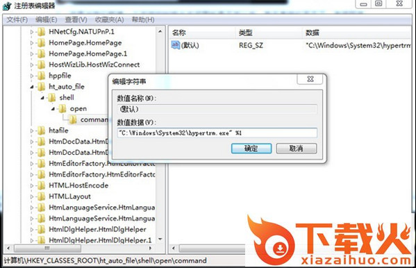 特别说明:"C:\Windows\System32\hypertrm.exe" %1 注意%1和前面有空格。退出注册表试试看能打开吗,假如不能进入注册表看是否变成:"C:\Windows\System32\hypertrm.exe" “%1 ”假如是去掉%1的双引号即可