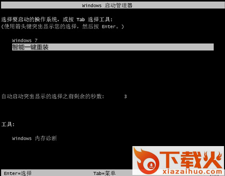 5.重启后,进入安装页面,请不要自行选择,默认会选择一键重装。点击“进入一键重装后,开始重装。
