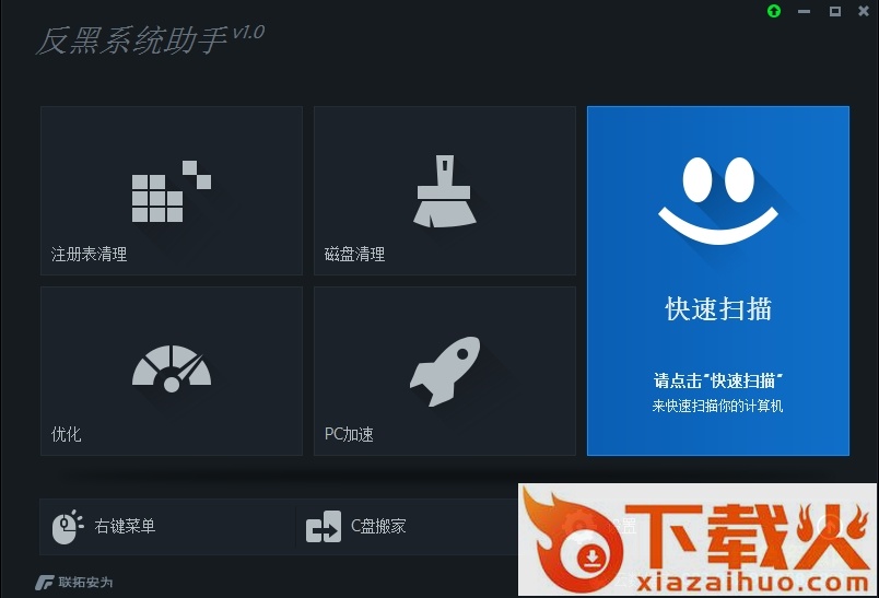 智能优化工具—反黑系统助手2016由联拓安为科技技术团队研发的智能新一代系统优化工具,为网络用户提供电脑系统优化、清理垃圾、电脑加速、c盘搬家、右键管理、注册表清理等等服务!