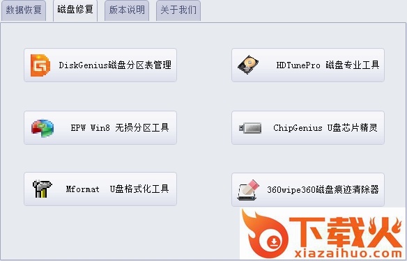超级数据恢复工具箱是一款数据恢复工具箱合集,可以支持360文件、硬盘、U盘、SD卡等供存储工具的数据回复,还能快速修复DiskGenius、HdTunePro等硬盘工具,功能十分强大,绿色资源网欢迎大...