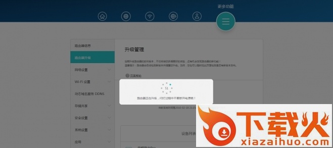 2) 登录成功后点击"更多功能"->"路由器升级"子选项,找到路由器"升级管理"如下: