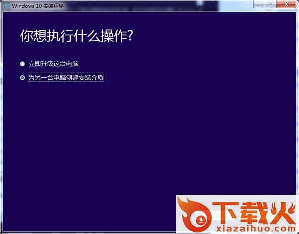 2:选择“为另一台电脑创建安装介质”,点击“下一步”