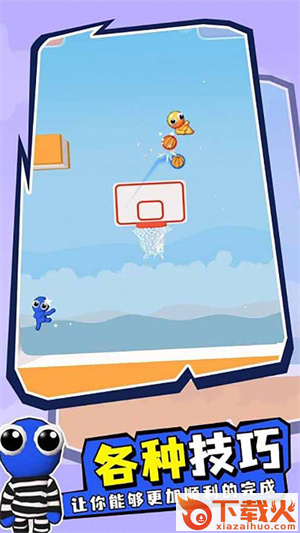 操控彩虹朋友进行比拼,完成一系列的投篮任务,逐渐的练习技巧,就可以轻松的获得高分