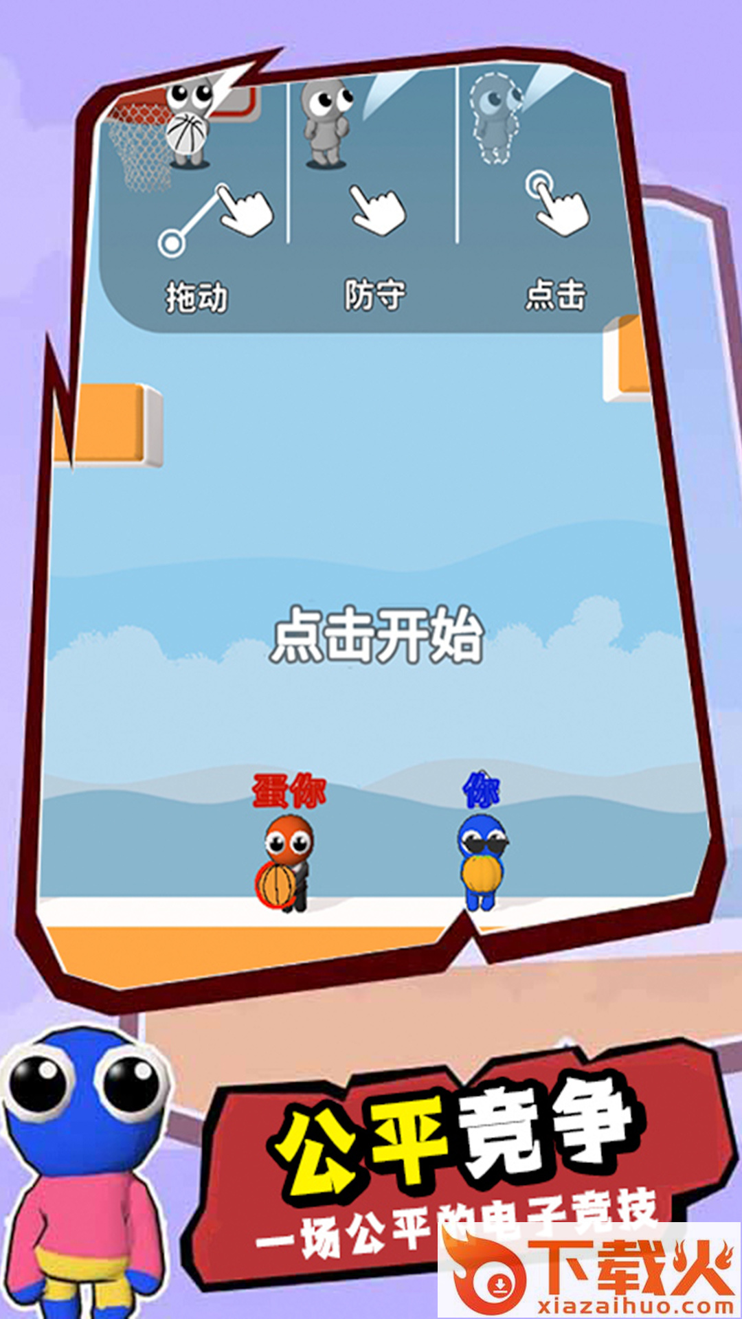 玩家不需要采用专业的投篮姿势去投篮,手指点击,轻轻松松投篮,顺利进分。